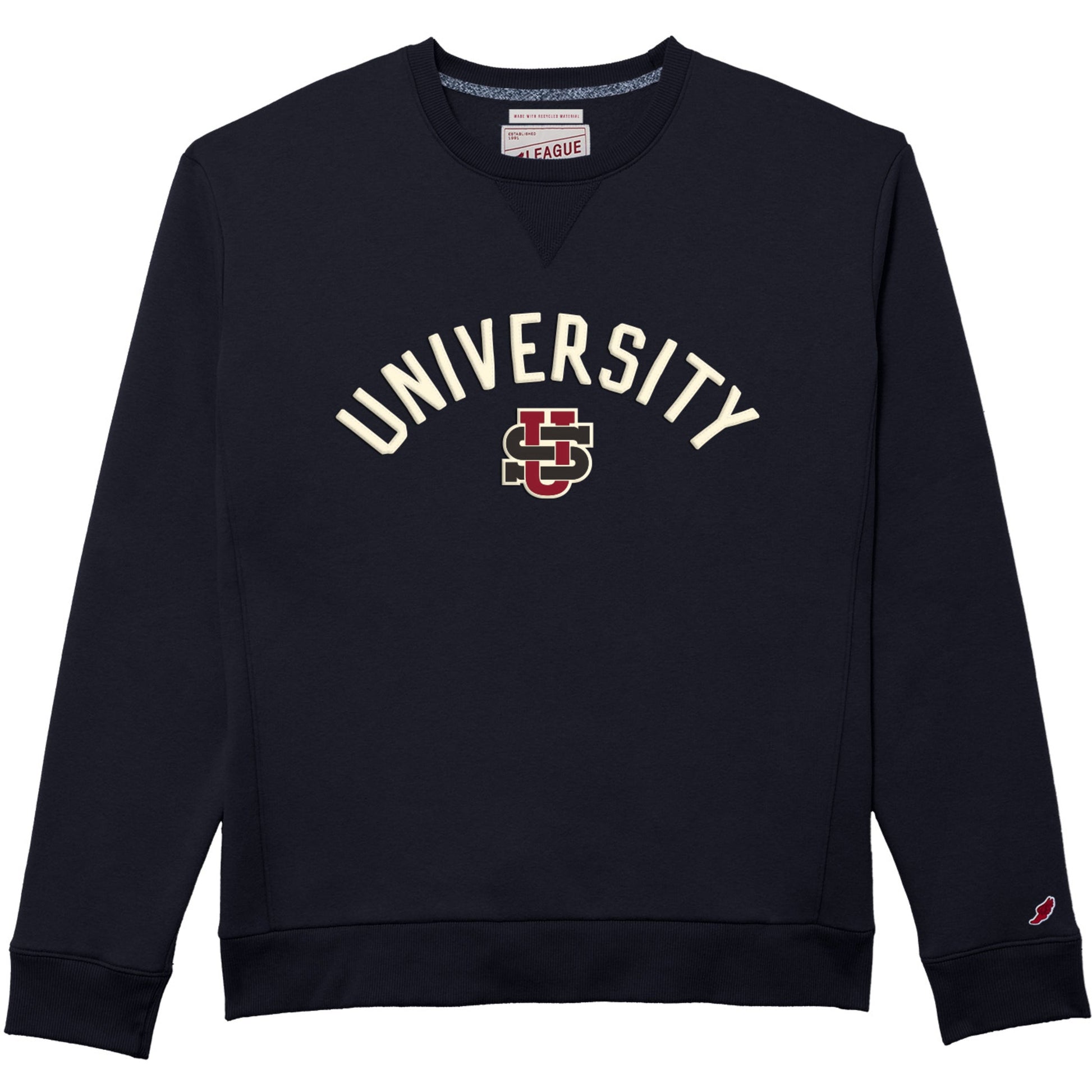 League PFM100 1991 Crew with "University" embroidered in an arch and the US Interlocking Logo embroidered on the center chest.