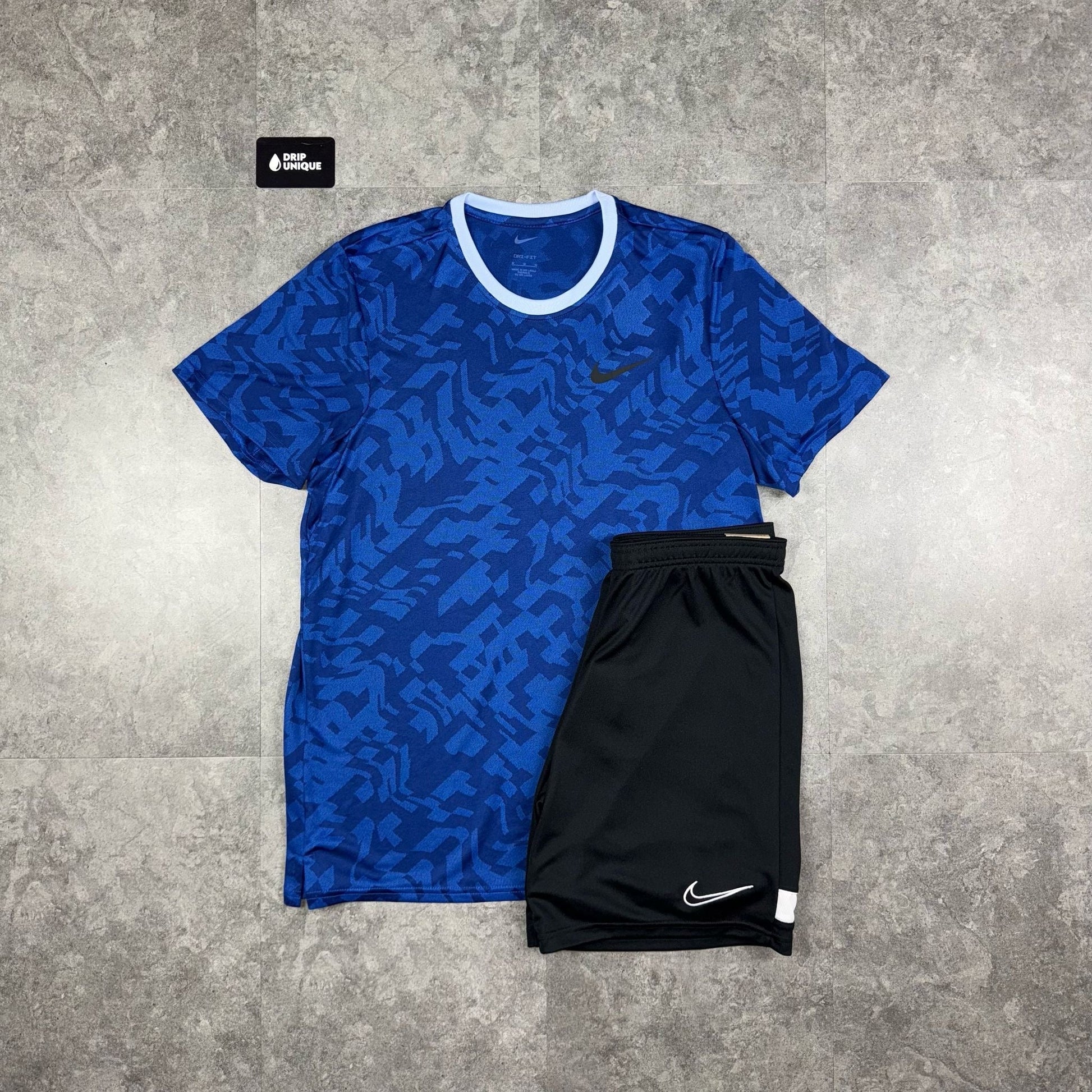 Nike Dri-Fit Super Set T-Shirt Royal Blue & Black Dri-Fit Shorts Set