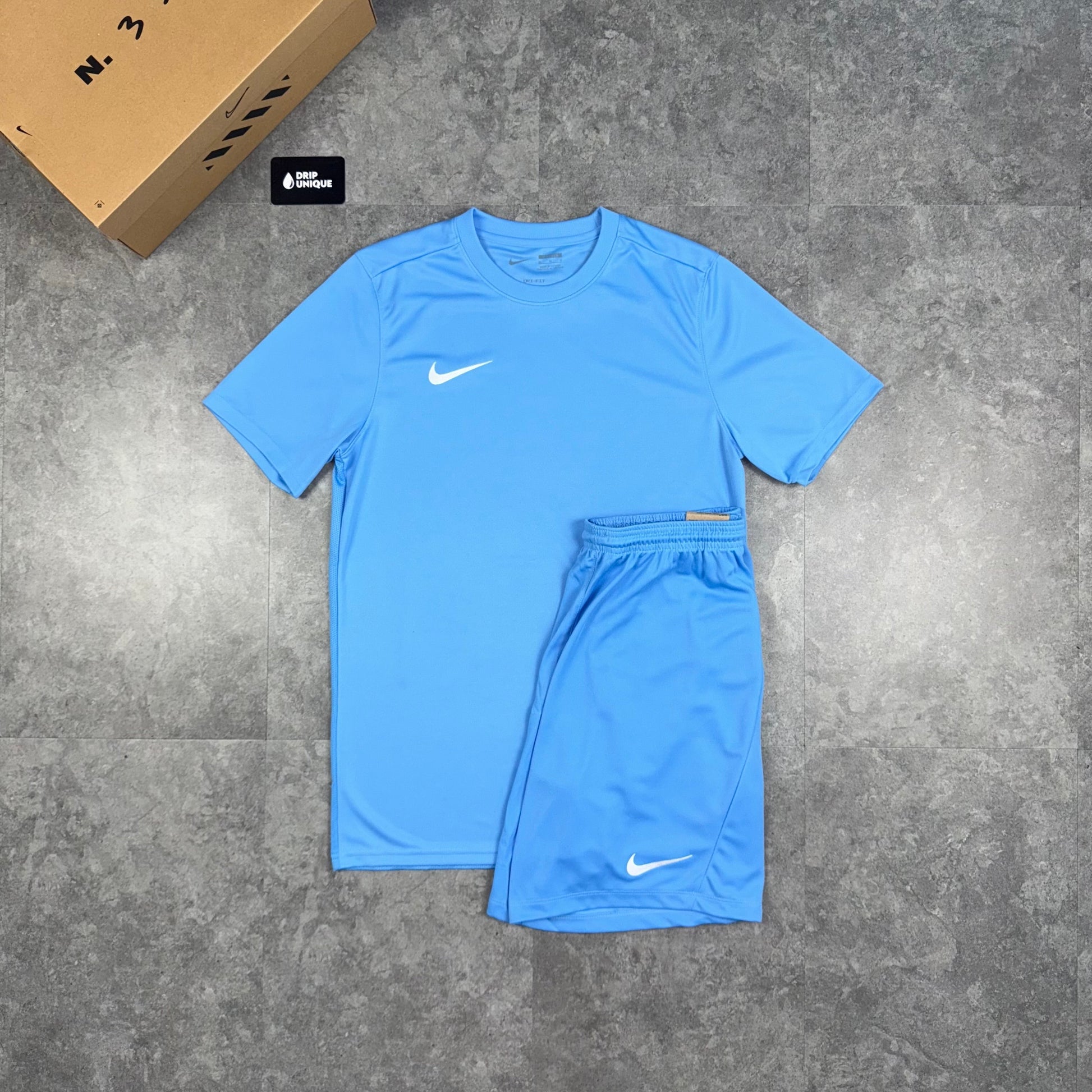 Introducing the popular Nike Dri-Fit Set in a University Blue Blue Colourway. This Nike Dri Fit Set features a breathable, lightweight and slim fit design and uses Dri Fit tech to help wick away sweat, keeping your dry for longer! This Nike Set is paired with the bestselling Nike Dri Fit Shorts in a matching University Blue colourway which feature a relaxed and comfortable fit, an elasticated waistband, making this set perfect for any task!