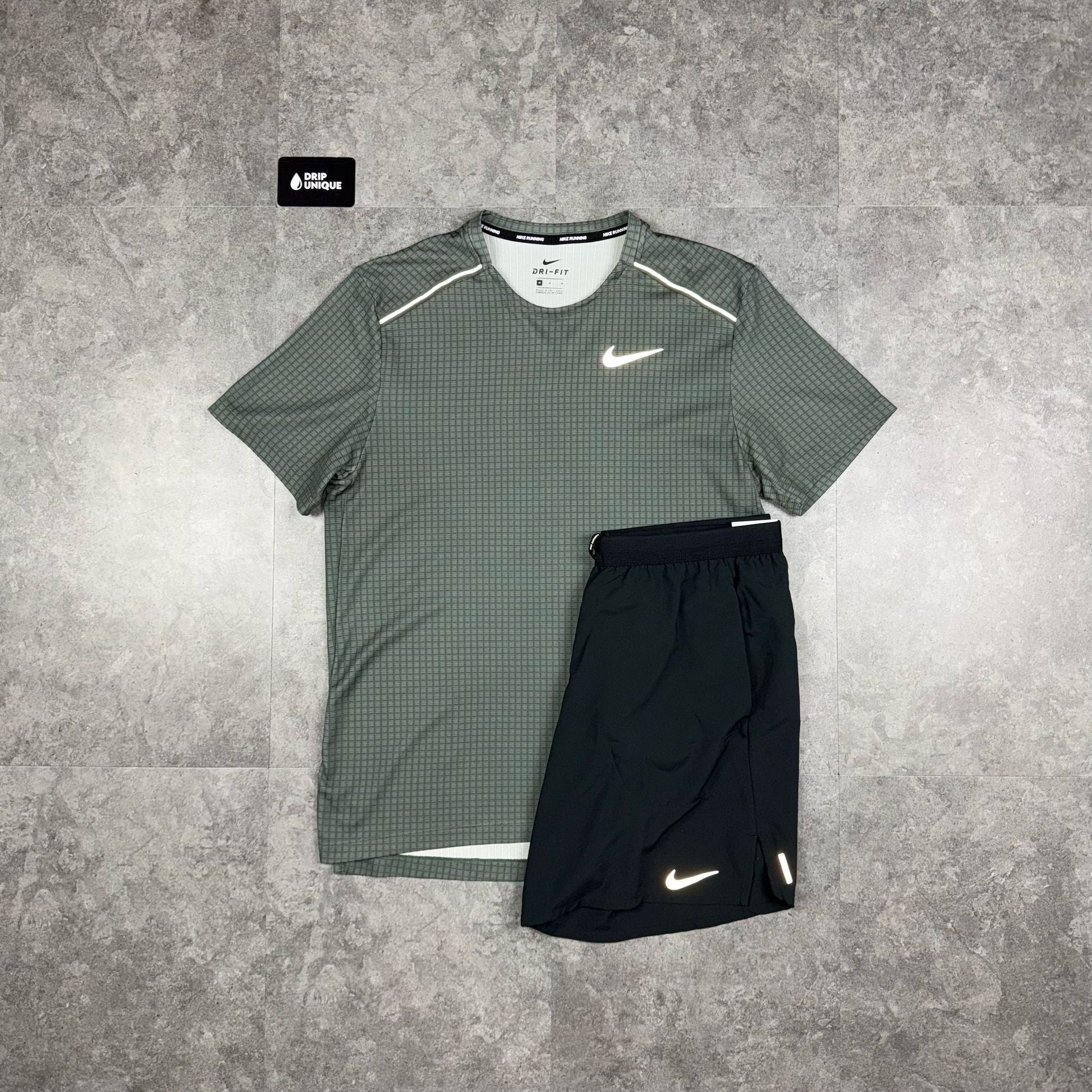 Nike Hex Miler T-Shirt Green & Black Flex Stride Shorts Set