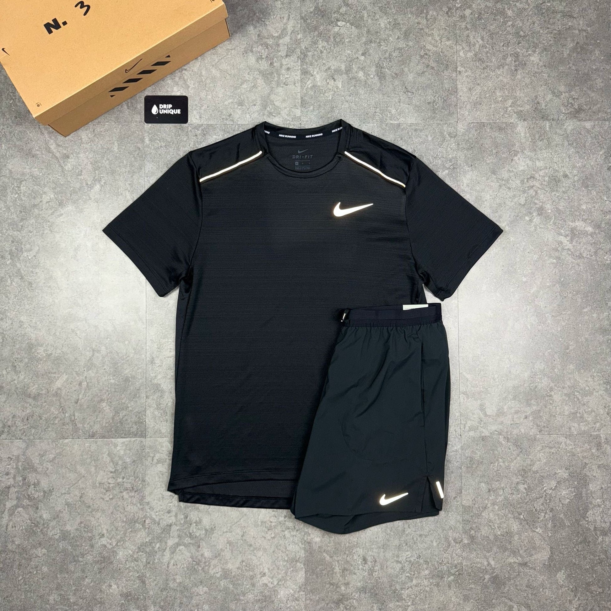 Nike Miler T-Shirt Black & Black Flex Stride Shorts Set