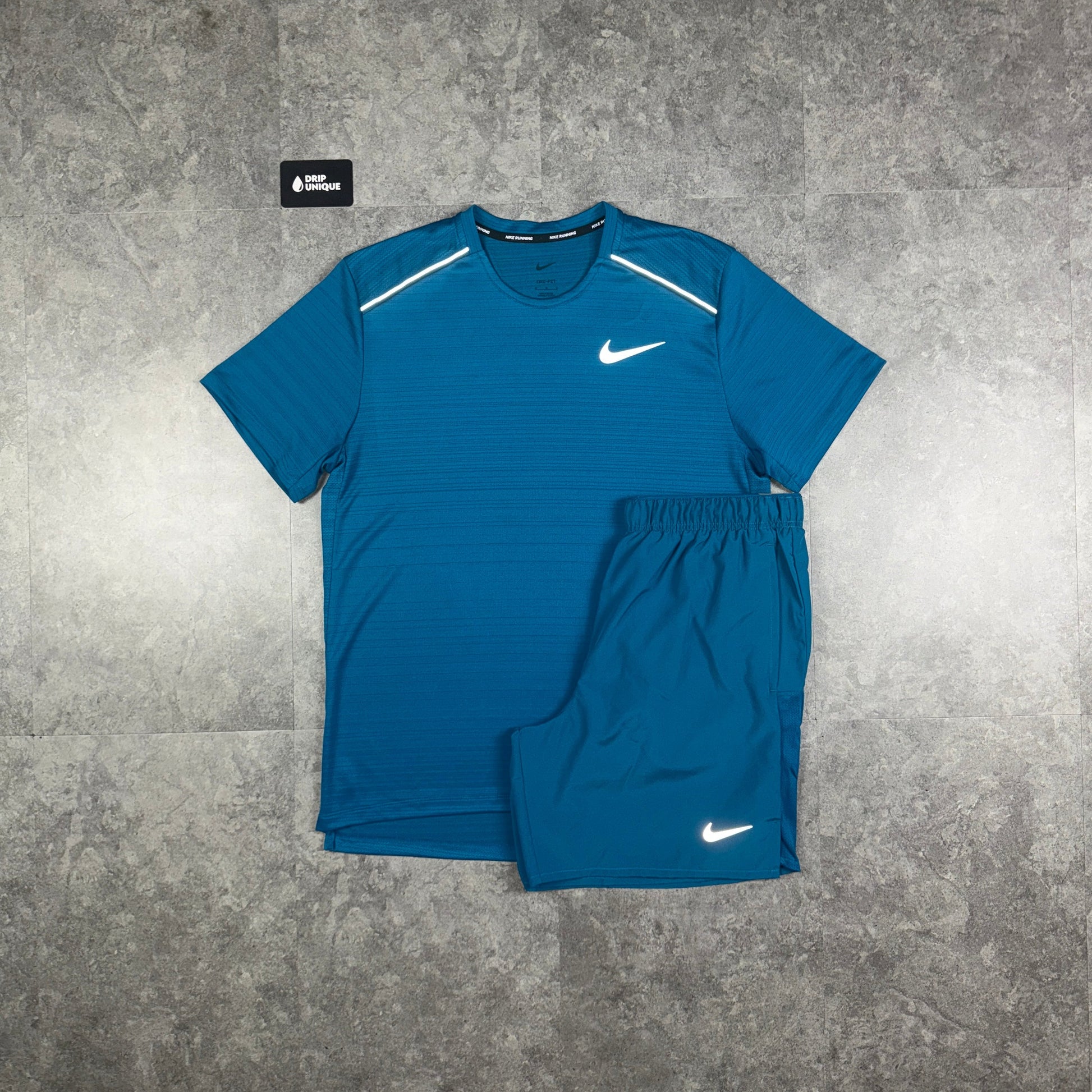 Nike Miler T-Shirt Green Abyss & Green Abyss Challenger Shorts Set