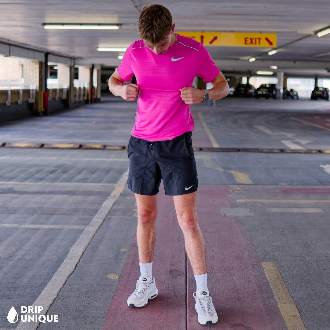 Our bestselling Miler Set of all time, the bestselling Nike Miler T-Shirt Set in a Hot Pink colourway is must have. Featuring Dri Fit Technology, which provides breathability and comfort by wicking away sweat, this Nike Set is the perfect addition to any wardrobe. The Nike Miler 1.0 keeps you comfortable, dry and looking fresh all day while the bestselling Nike Flex Stride shorts in a Black Colourway to complete the look!