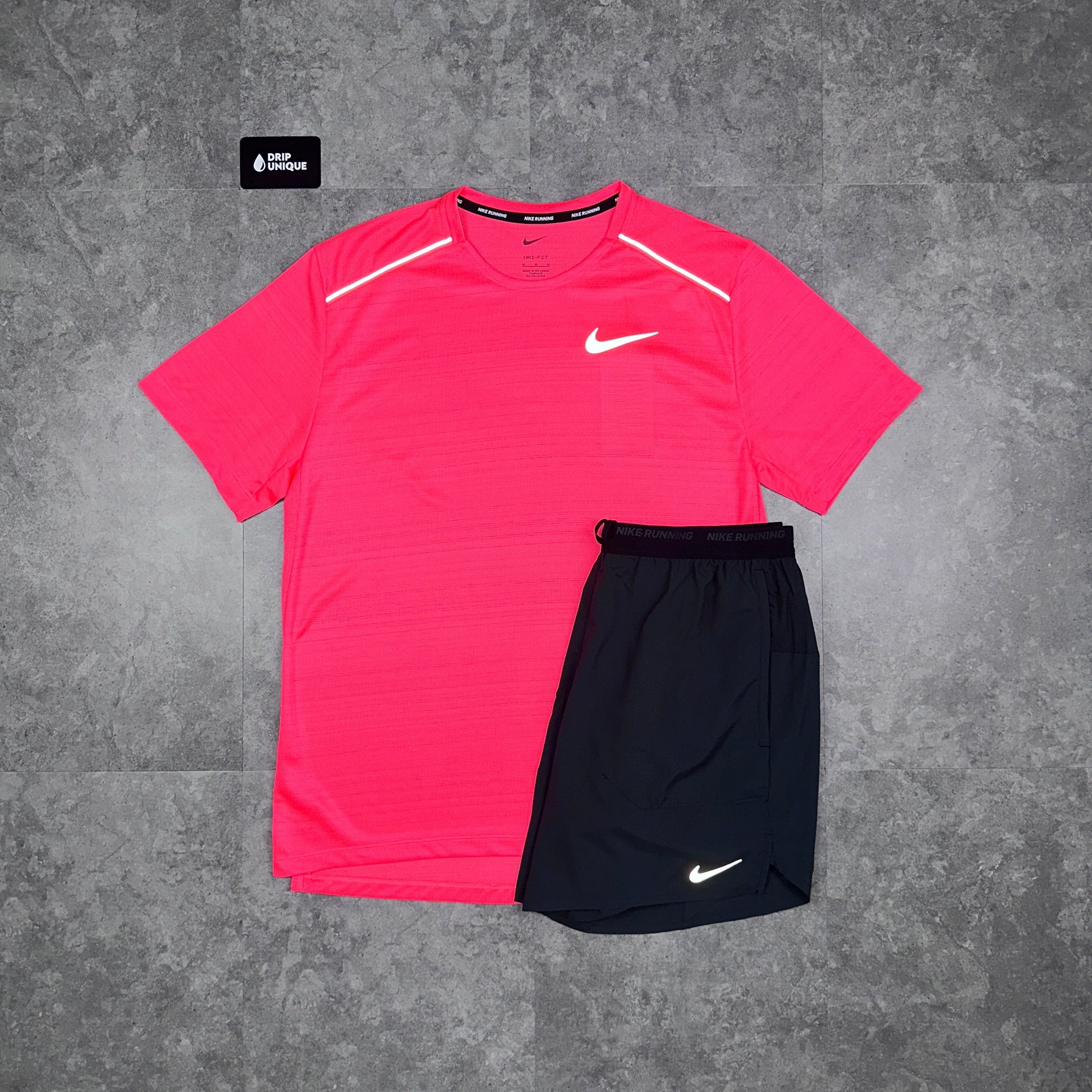 Nike Miler T-Shirt Punch & Black Flex Stride Shorts Set
