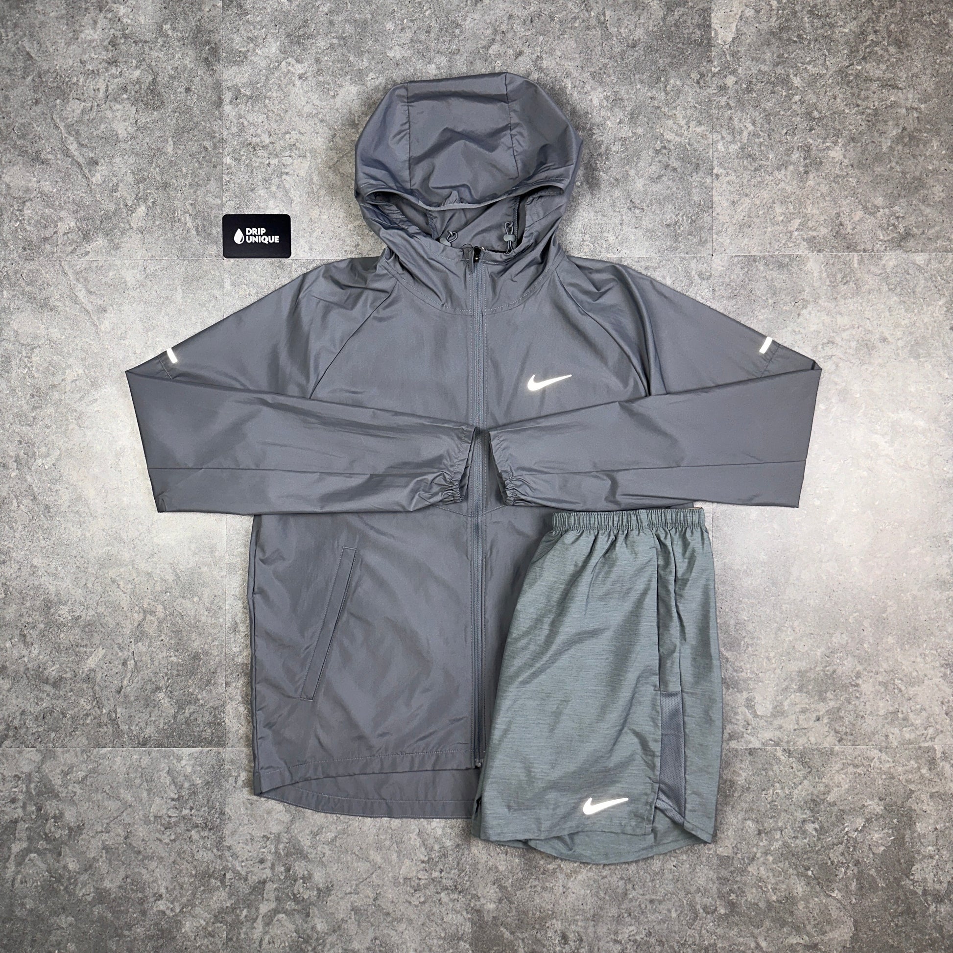 Nike Repel Miler Windrunner Jacket Grey & Grey Challenger Shorts Set