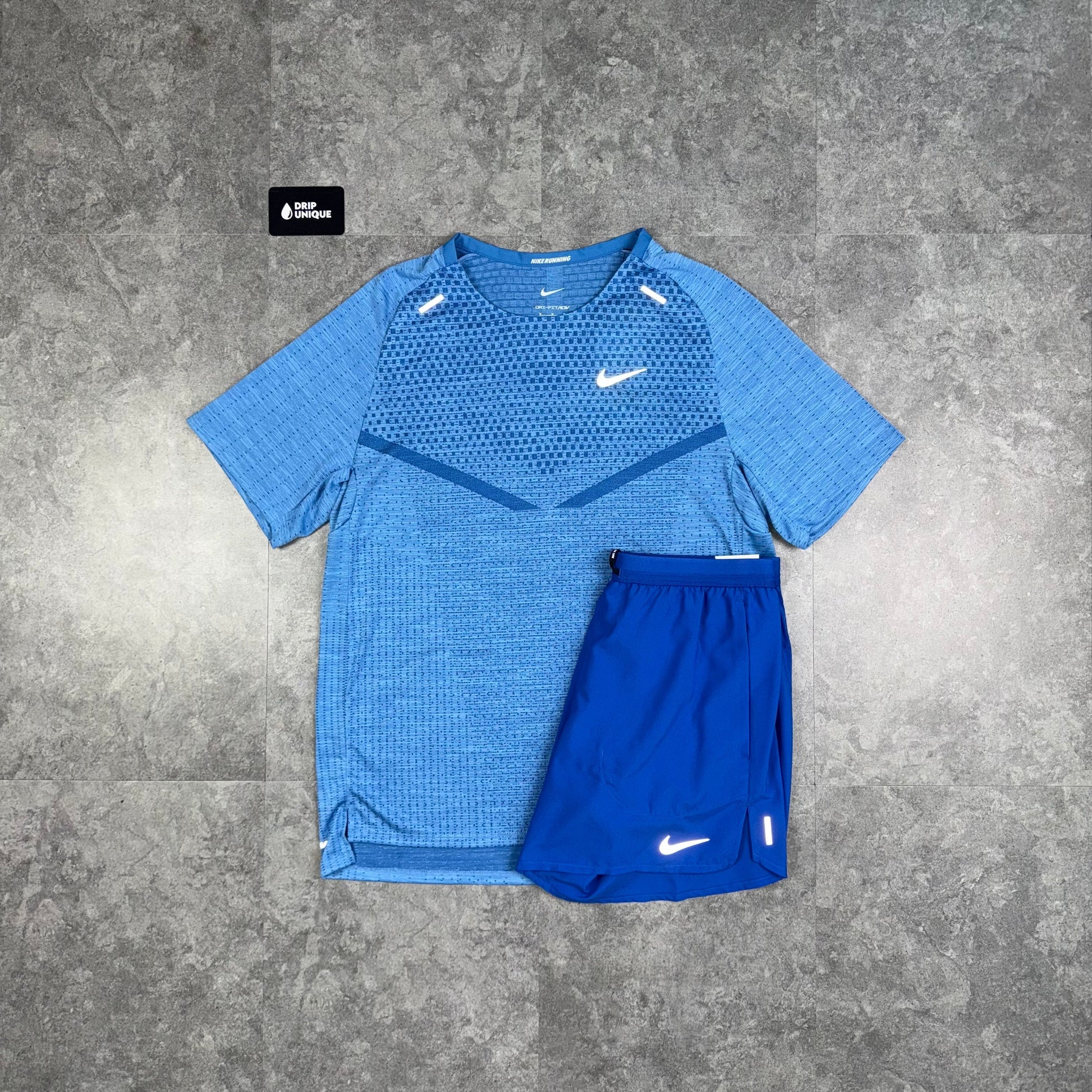 Nike TechKnit T-Shirt Star Blue & Royal Blue Flex Stride Shorts Set